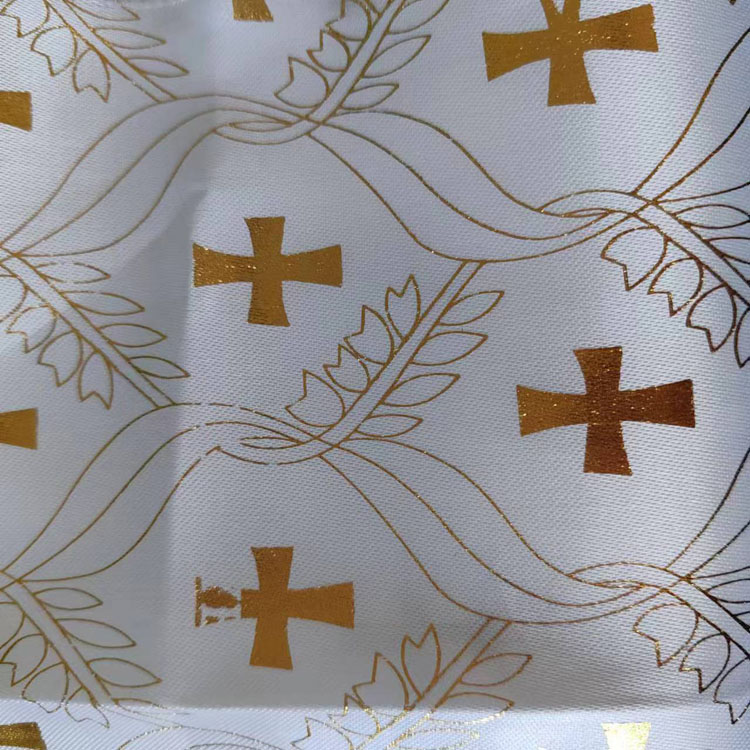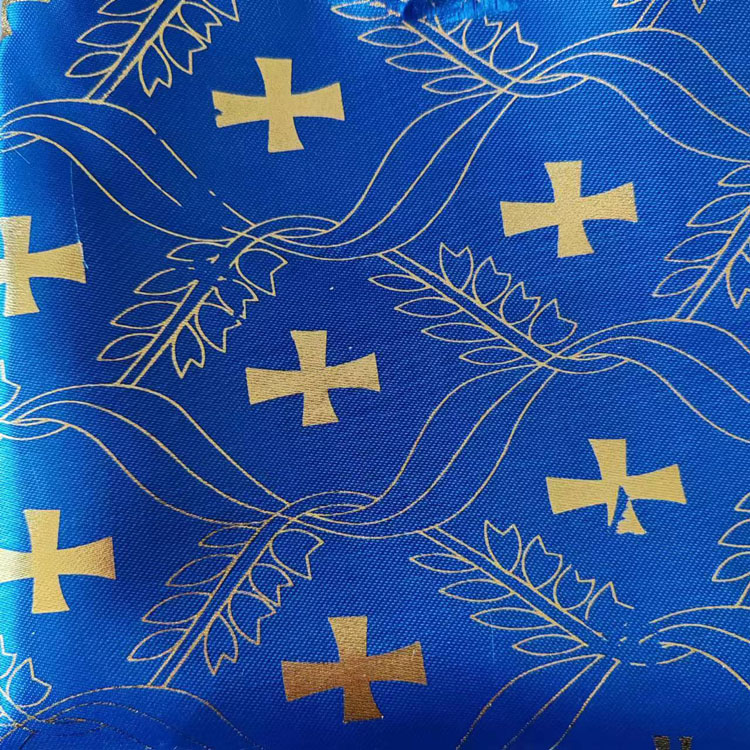 FS13 custom cross pattern satin with gold stamp fabric for casket coffin interior china supplier polyester funeral fabric