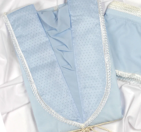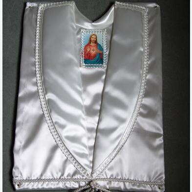 M-11 funeral supplier white satin casket dead clothes with blue color decoration funeral gowns